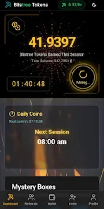 채굴 외에도 Blistree는 사용자가 친구를 초대하여 수익 네트워크를 구축하도록 장려하며, 이는 채굴 속도를 향상시킬 수 있습니다. 이 앱은 추천 및 보너스 이벤트를 통해 수익을 올릴 수 있는 다양한 방법을 제공하여 참여가 결과를 낳도록 보장합니다. 보안은 모바일 번호 로그인 및 OTP 인증으로 우선시되어 사용자 데이터가 암호화된 상태로 유지됩니다. 전반적으로 Blistree는 디지털 토큰 채굴에 대한 간단하고 보람 있는 접근 방식을 제공합니다.